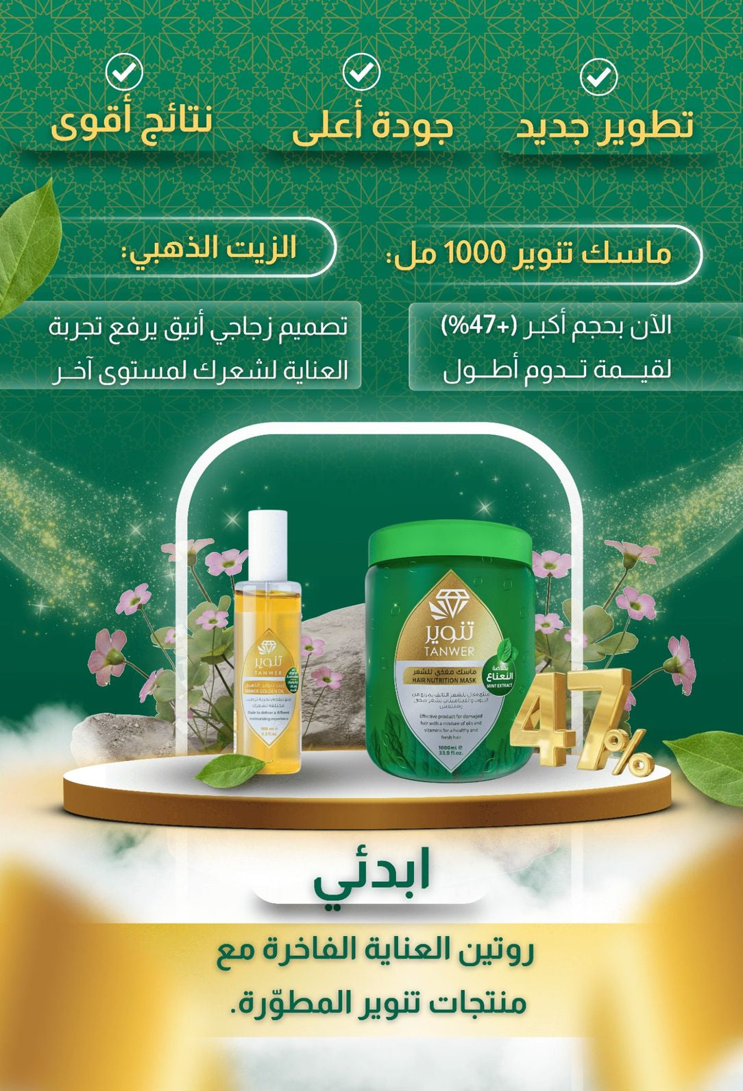 تنوير انترناشونال هي شركة متخصصة في صناعة منتجات علاج الشعر، ونفخر بتقديم حلول فريدة وفعالة للعناية بالشعر. ومنذ أكثر من 8 سنوات، سعت خبيرة الشعر تنـوير حمدي إلى تقديم منتجات صحية وآمنة للشعر ذات جوده عالية وفاعليه سريعة ونتائج مستمرة حتى بعد ايقاف استخدام المنتجات، منتجات تنـوير® مصنوعة للجميع بغض النظر عن العمر والجنس والعرق وهي آمنة جدا للاستخدام المتكرر لجميع أنواع الشعر.